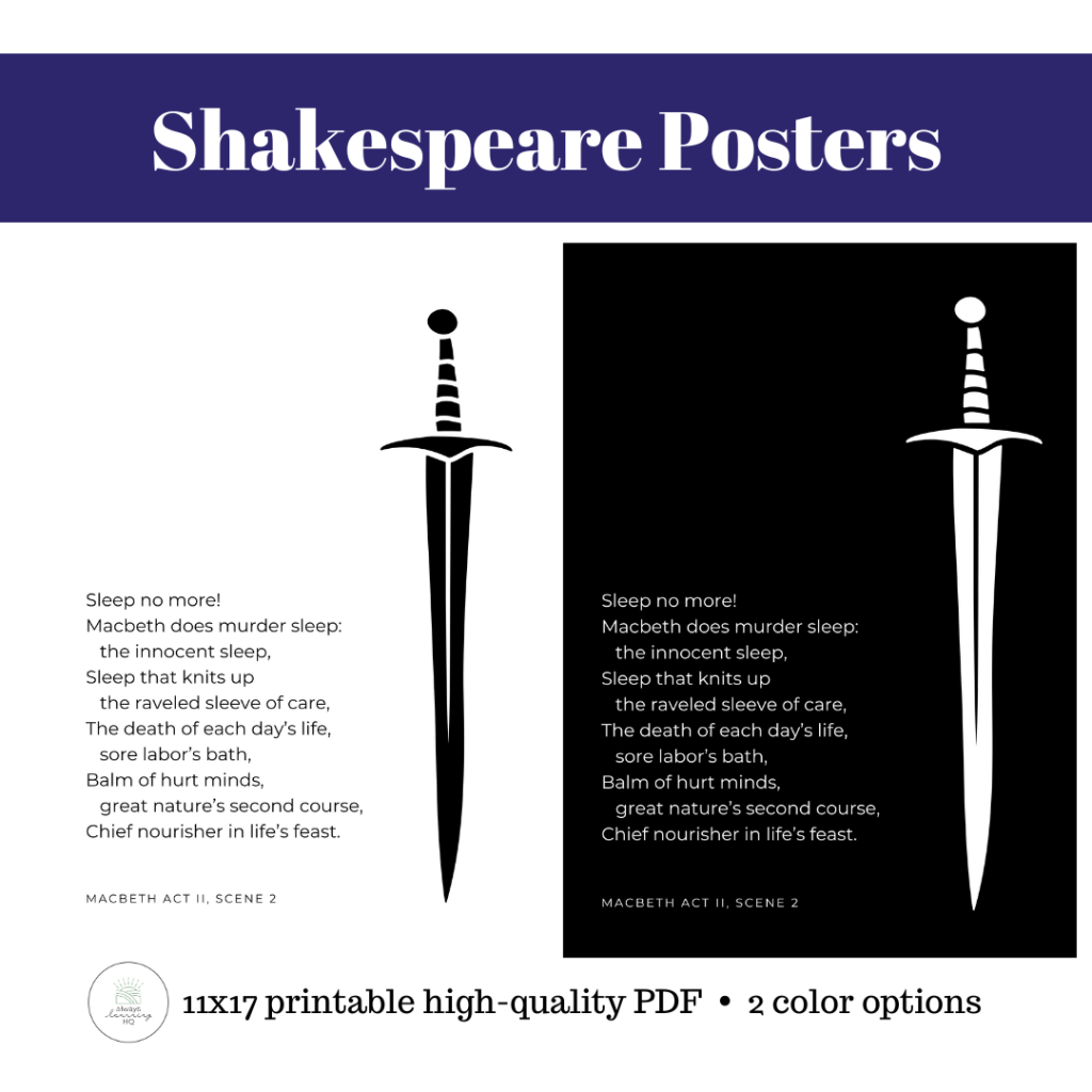 So hopefully, if you do teach Macbeth, this free poster and analysis worksheet will speed your way toward the “Chief nourisher in life’s feast.”